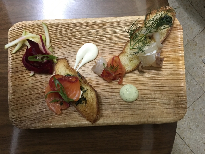 - Cured Fish Plate – beetroot gravlax and citrus cured mullet with pickled apple and beetroot, aioli duo and herb crostini