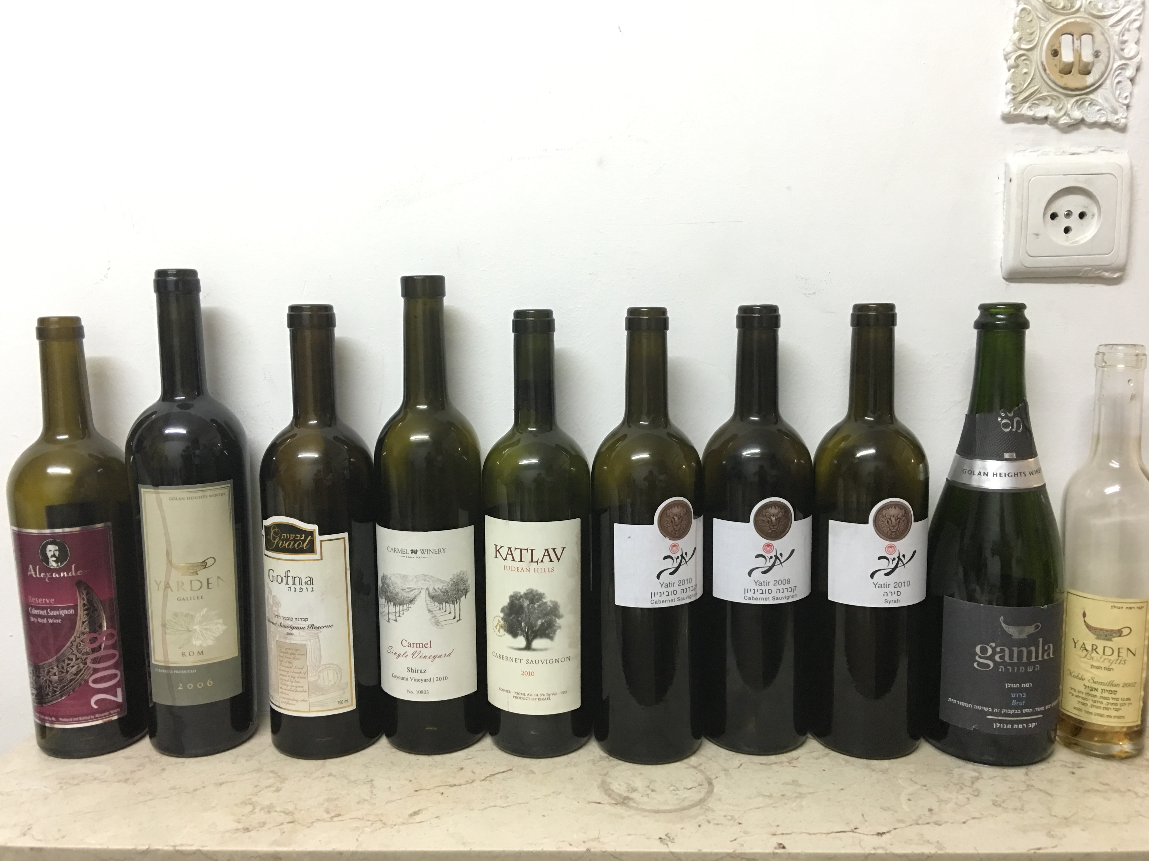 Yatir, Cabernet Sauvignon, 2008 (replaced the listed Golan Heights Winery, Yarden, Cabernet Sauvignon, 2009) – As noted below, much more typical in flavor than the ’10 – with the fruit taking a much more central role. Again – you can taste the added Syrah – with a nice spiciness. This wines finish was super short and I am guessing it’s best years are behind it. Drink up….