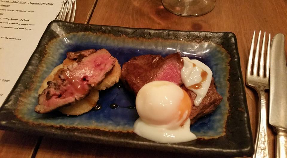 - Steak and Eggs – Tournedos rossini on pancakes with a whiskey maple sauce