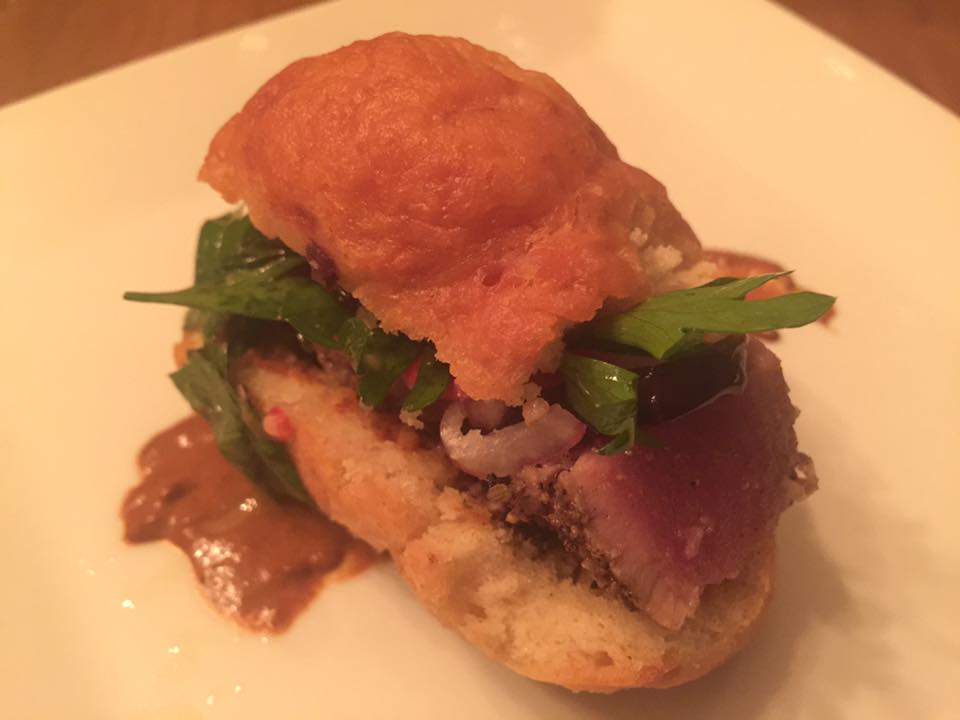 - Surprise Appetizer – By guest chef Todd Aarons of Crave – Seared Tuna Slider