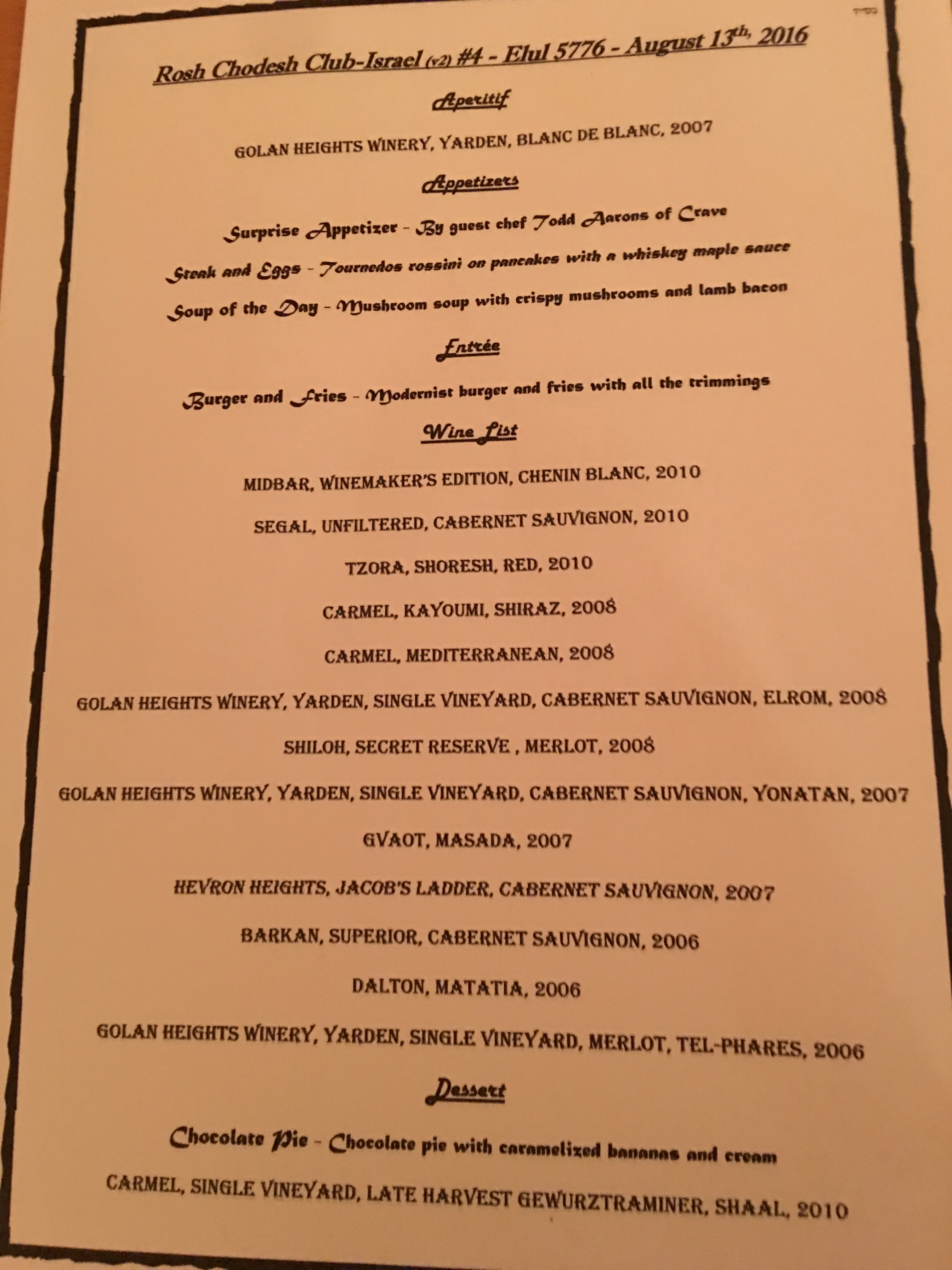 RCC Israel #4 in honor of Elul 5776 was held on September 13th, 2016 in Nachlaot. This RCC had one of our most inventive menus to date. Also, Chef Todd Aarons – of Crave and Tierra Sur fame was in attendance and contributed the seared tuna slider appetizer in the pictures. The rest of the menu was one of our most inventive – and featured a “Diner” theme. Uri and Bracha outdid themselves