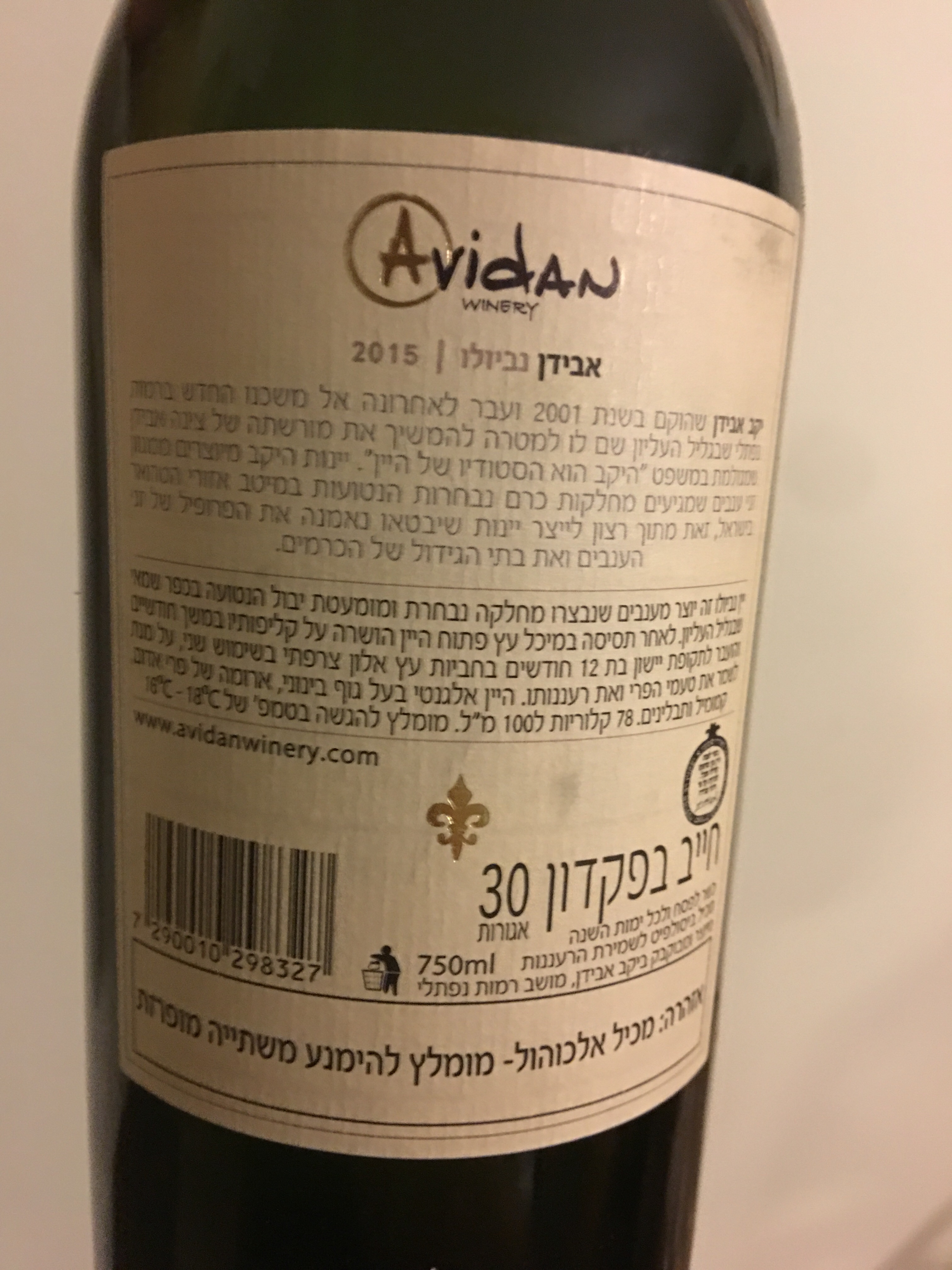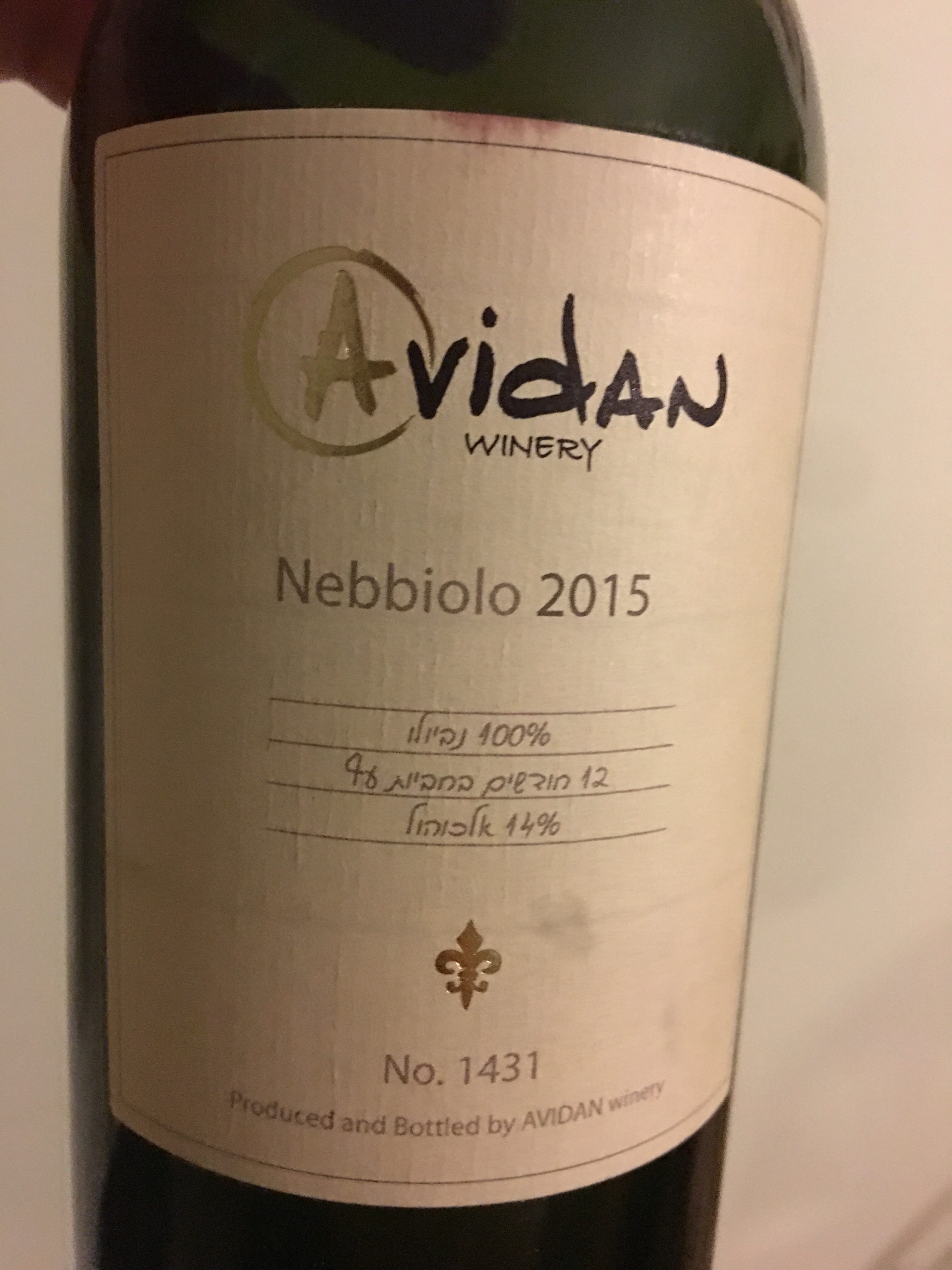 I have tasted a number of wines from Avidan before – usually at wine festivals. Some have been OK, some not for me. None have been bad. So when I saw the 2015 Avidan Nebbiolo among the pictures, I asked him to pick me up a bottle as there are precious few kosher Nebbiolos to sample.