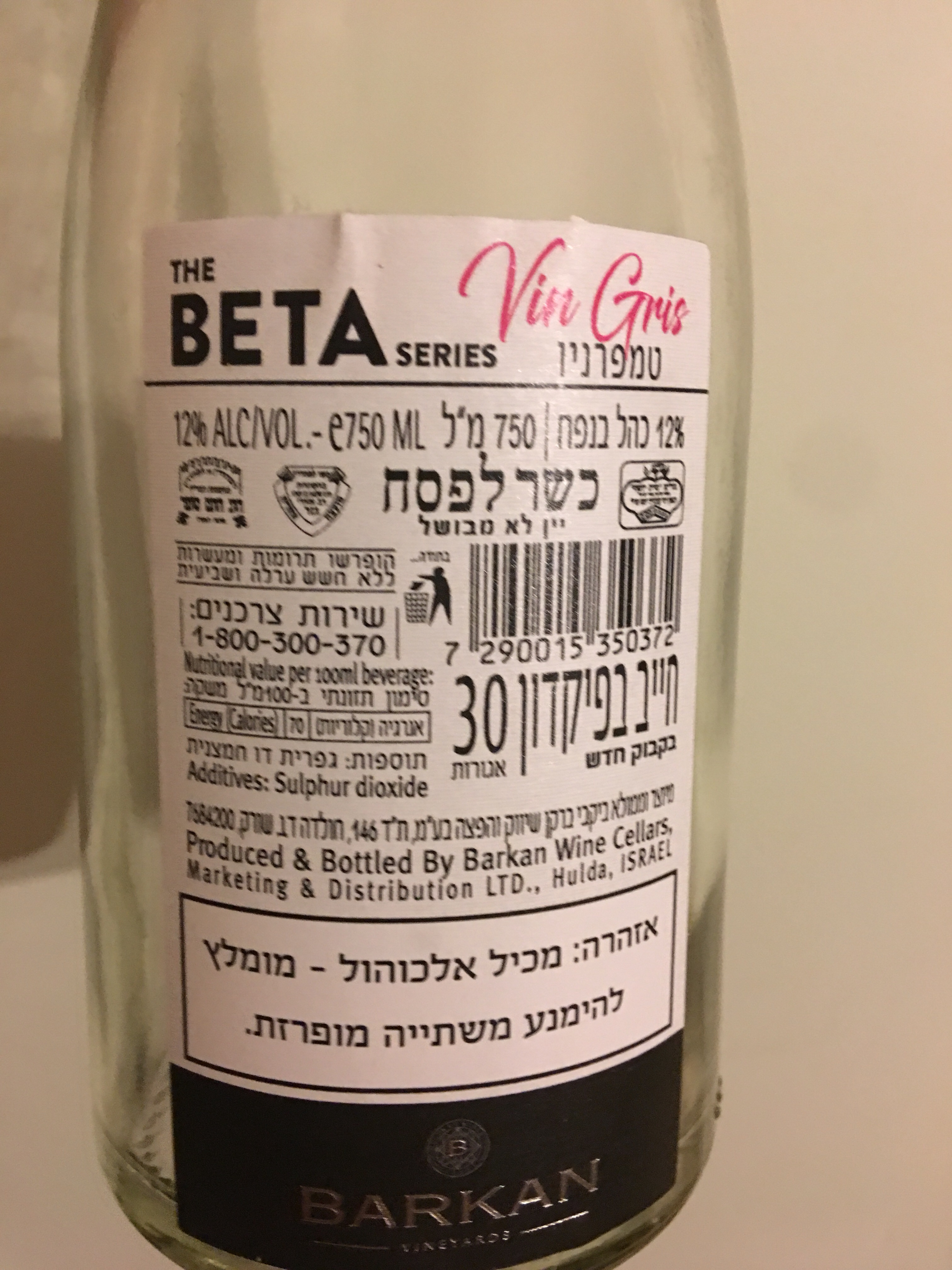 With that in mind rather then pin all of my hopes on a quick change at winery’s main lineup, I was hoping for some new releases that would allow the winemaker free reign without being shackled to past styles. So when a friend told me about the Beta Series, a relatively small release of a new line by Barkan, it immediately piqued my interest. The Beta Series is so far made up of three wines – 2 whites and a Rosé. This post will deal with Rosé.