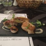 As Ashkenazic customs of the 9 days prohibit the consumption of wine even on Rosh Chodesh Av we had the RCC brought forward by a couple of days to accommodate. While every dish that we had was wonderful (and beautifully plated), the clear star of the night for me was the dual preparation of Flat Iron Steak (for those in the US – a minutes steak roast , split in the middle, removing the grizzle separating the 2 sides creating 2 flat steaks – in Israel the roast is a # 5 – Tzli Katef). On preparation was braised in coffee and the other was cooked off as a steak after a lime based marinade. Really delicious. Now on to the wines.